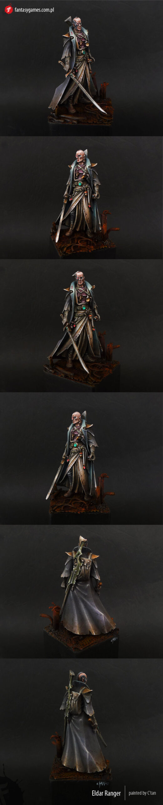 Coś dla oczu, na dobry początek. Galeria zwycięskich i wyróżnionych prac z konkursu Master of Imagination 2012, tutaj natomiast fotki wszystkich zgłoszonych figurek. Malus Darkblade, jeden z moich ulubionych bohaterów świata Warhammera, w postaci popiersia - wciąż w malowaniu, ale już robi wrażenie. Czarny smok, nietypowa jednostka mrocznych eldarów - naprawdę ładnie "stechnicyzowany". A tutaj jedna z finałowych prac tegorocznego włoskiego Golden Demona, pojedynek na wraku pojazdu Tau. Predator Chaosu, jeden z ciekawszych oglądanych przeze mnie niedawno modeli pojazdów - podoba mi się zwłaszcza fotka klimatyczna "z pola walki". Eldarski Ranger, figurka w skali 54 mm, produkcji GW, wydana jakiś czas temu do gry "Inquisitor", w interpretacji C'tana (zdjęcie tej pracy widać obok dzisiejszej notki). Pozostając w klimatach polskich, diorama "Wrota Piekieł" Karola Rudyka, jej częścią jest zwycięska praca z MoI 2012. I - na koniec dzisiejszych ładnych obrazków - miniscenka nazwana "Wracaj do cienia" - świetne operowanie, nomen omen, cieniami i światłem, a także bardzo podobająca mi się kolorystyka.